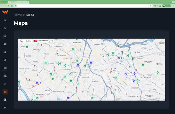Mapa em tempo real das vistorias
