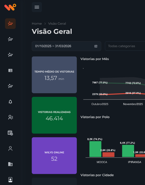 Visualize em tempo real onde as vistorias estão sendo realizadas, com localização precisa e status atualizado de cada intervenção. Tenha controle total da operação distribuída em campo.